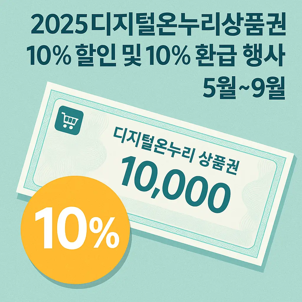 - 디지털 온누리상품권 10% 상시 할인: 모바일·카드형 상품권을 구매할 때마다 10% 즉시 할인.