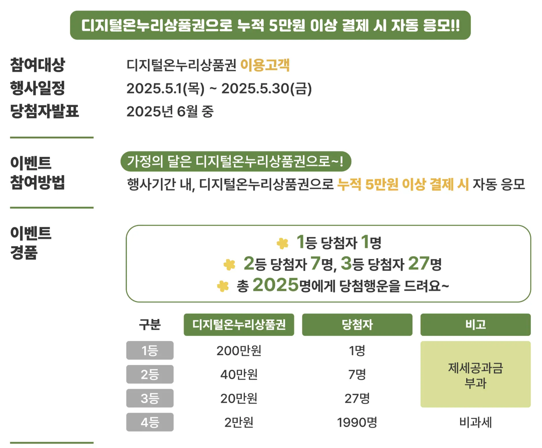 A. 이번 이벤트는 모바일·카드형 ‘디지털 온누리상품권’ 전용입니다.